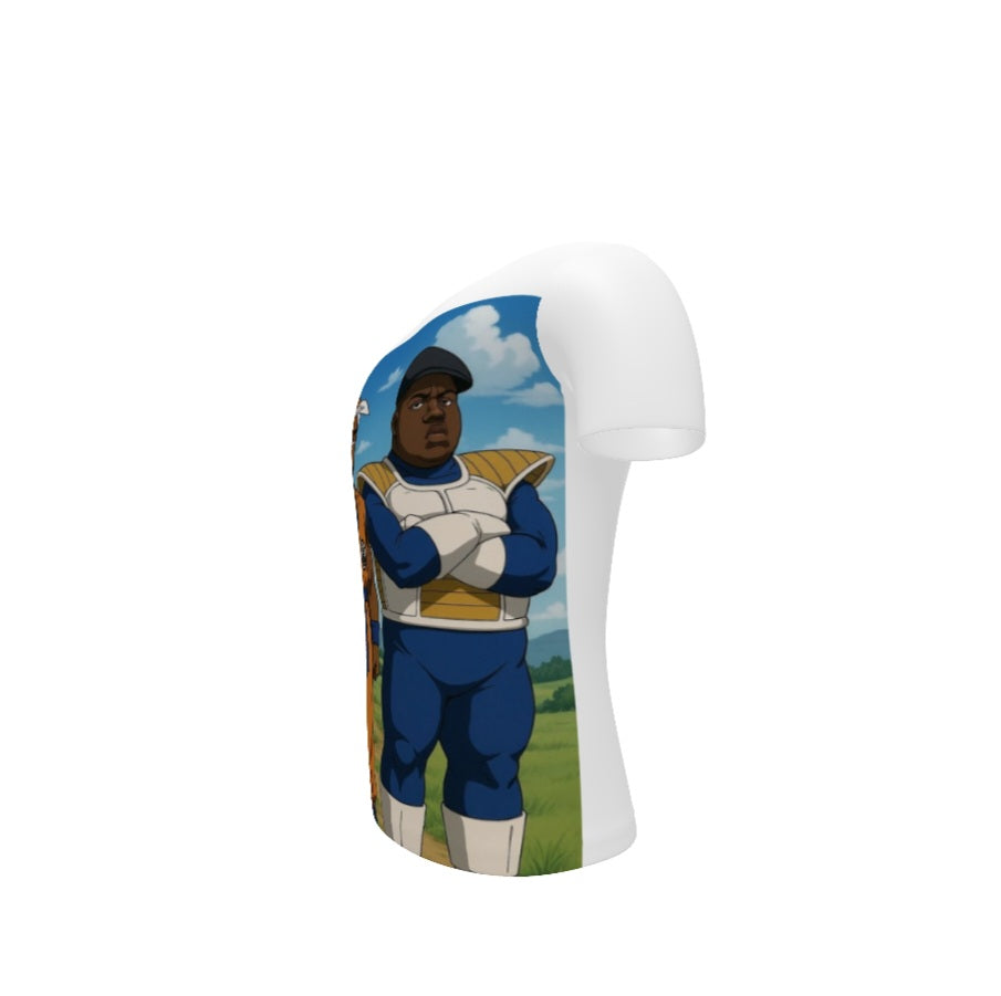 This tee brings the ultimate crossover: hip-hop icons reimagined as Saiyan warriors straight outta the Dragon Ball Z saga. Whether you’re training in the Hyperbolic Time Chamber or vibin’ in the studio, this shirt’s pure fusion energy.